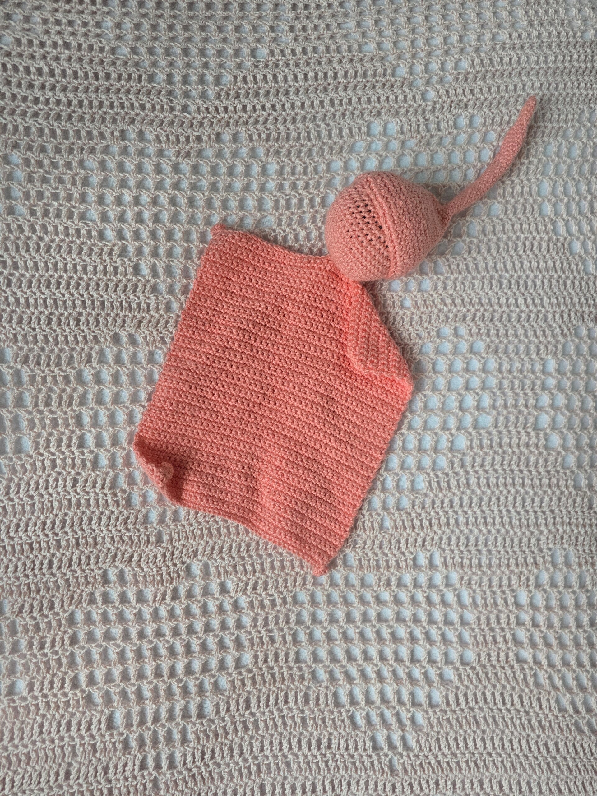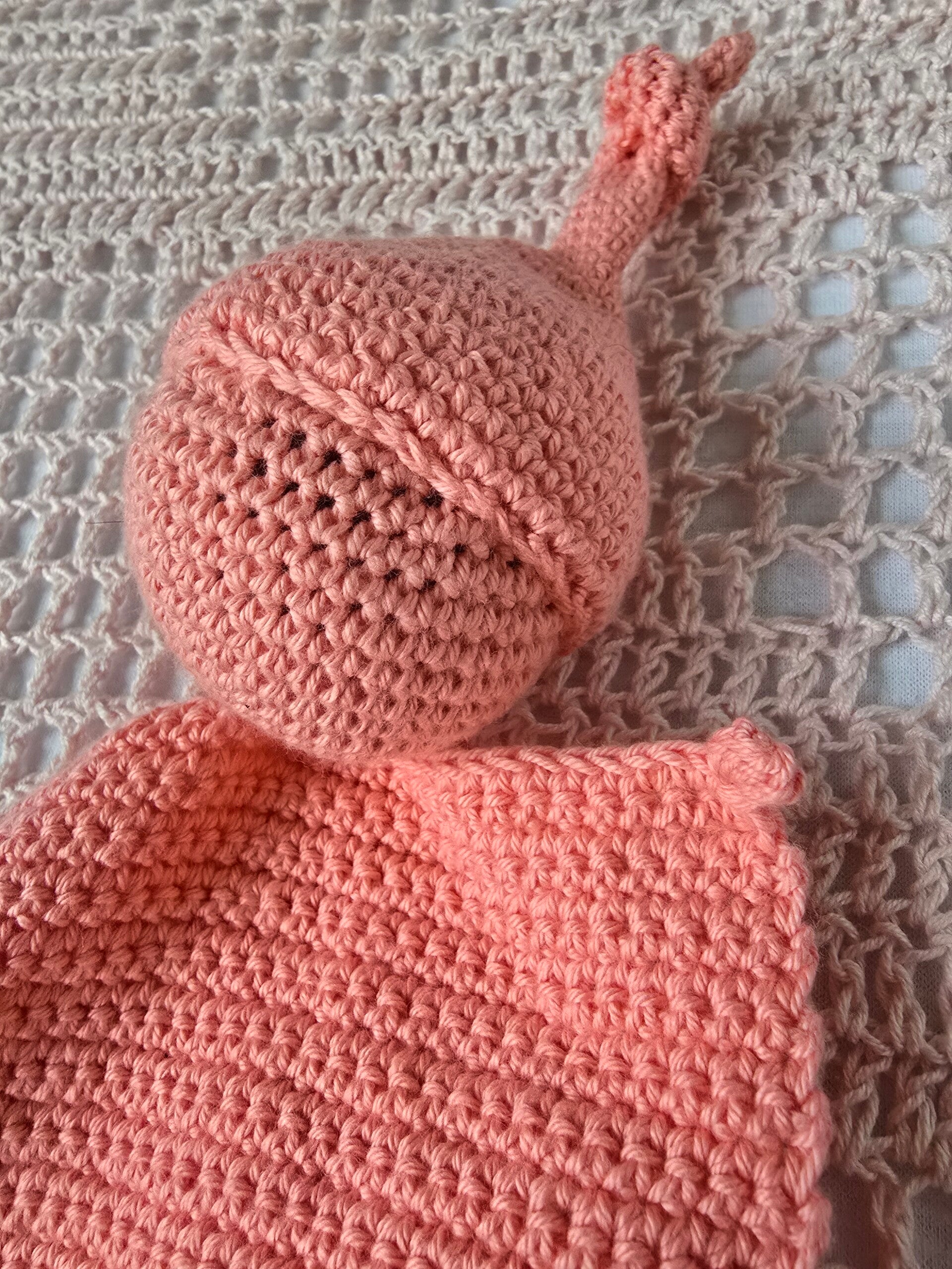 Dit lieve gehaakte tutteldoekje is met de hand gemaakt en en vormt een fijn en vertrouwd vriendje voor je kleintje. Het knuffelpopje kan gebruikt worden als knuffel of als speen doekje. Aan het mutsje kan je namelijk een speentje knopen.